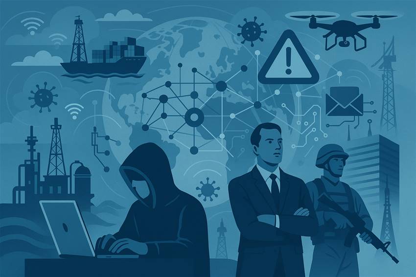 Hybrid threats strike states, institutions and industries every day. They are coordinated actions conducted across multiple domains and kept below the threshold of open conflict. They combine cyberattacks, information interference, economic pressure, exploitation of choke points, proxy activities and grey-zone operations. Their goal is to weaken infrastructures, decision chains, public trust and economic stability.