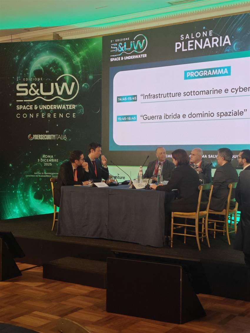 GMSPAZIO joined the working group on hybrid warfare and the space domain during the Space and Underwater Conference. The session showed how modeling and simulation support operations in complex scenarios where conventional and unconventional threats need fast and data driven analysis. We presented BlueComm, a modeling and simulation engine for underwater acoustic communications and sonar sensors. BlueComm provides a controlled numerical environment useful to study acoustic propagation, assess link resilience and define operational configurations without expensive sea trials These capabilities are relevant in hybrid warfare where the interaction between physical and digital domains requires tools able to test variable conditions and identify vulnerabilities before real operations. Simulation speeds up threat assessment, supports quick decisions and reduces operational risks. The combination of environmental data, physical models and dynamic scenarios helps anticipate the effect of interference, disturbances or targeted actions on communication chains or sensors. Our participation highlighted how a digital approach helps manage the grey areas of hybrid warfare and strengthens multi domain security from the sea to space.