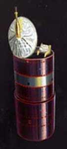 models, has two telescoping cylindrical solar panels and an antenna that folds for