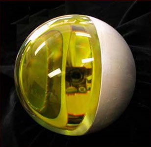 The 170 mm diamerer BLITS nanosatellite consists of two outer hemispheres made of a low-refraction-index glass (LK6 type) and an inner ball lens made of a high-refraction-index glass (TF105 type). The ball lens radius is 53.52 mm, the total radius of the spherical retroreflector is 85.16 mm. The hemispheres are glued over the ball lens; the external surface of one hemisphere is covered with an aluminum coating protected by a varnish layer. All spherical surfaces are concentric. The satellite total mass is 7.53 kg. A small spherical retroreflector of the same type (6 cm in diameter) was fastened to the Meteor-3M spacecraft and tested during its space flight (2001-2006).